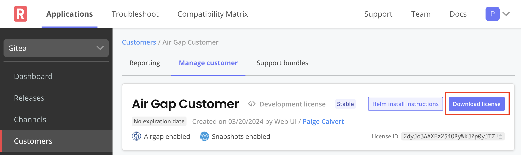 2. Go the channel where the target release was promoted to build and download the air gap bundle for the release: